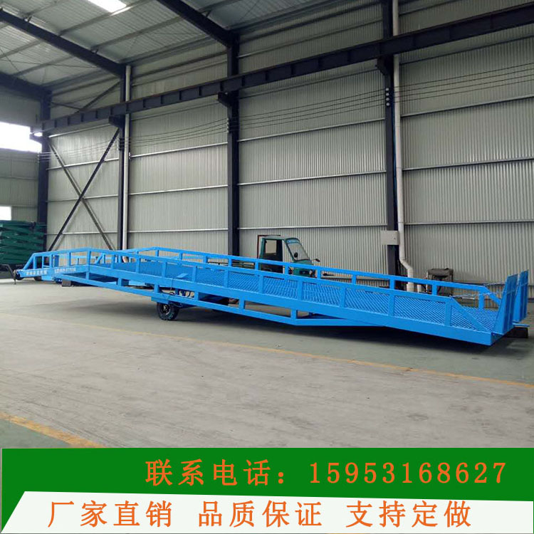 是与叉车配合使用的货物装卸辅助设备,可根据汽车车厢的高低调节高度,叉车可以直接通过本设备驶入车厢内部进行货物的批量装卸,仅需单人作业,即可实现货物的快速装卸 。它使企业减少大量劳动力,提高工作效率,获取更大经济效益。