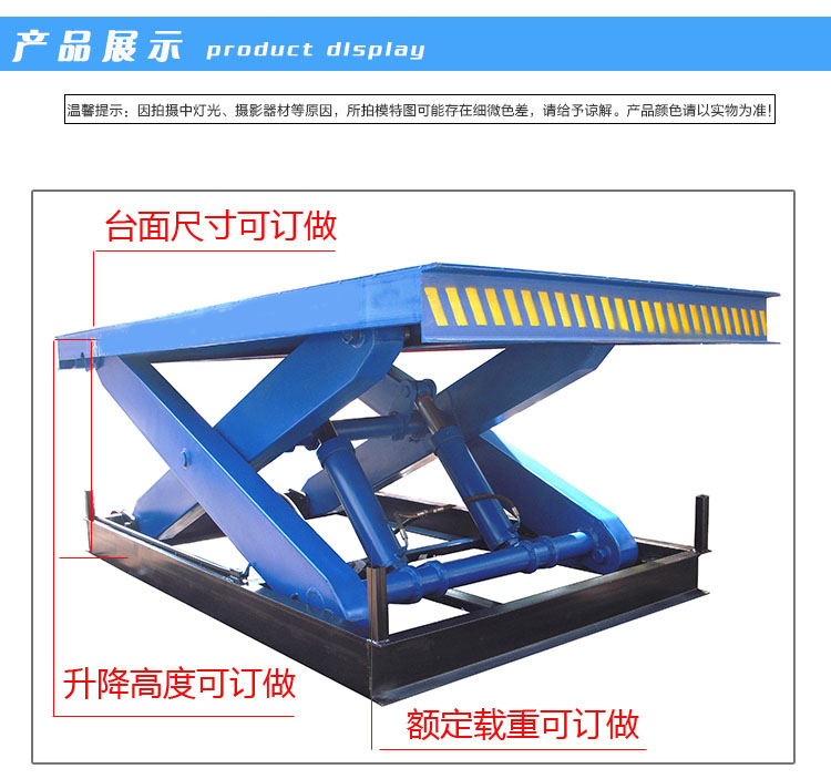 2、升降高度稳定性,能满足大吨位货物平稳举升.设有防腐,超载安全保护的液压系统,保障运行安全
